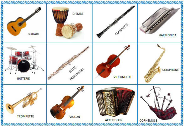 | Cymbales | Mandoline | Tambourin | Xylophone |